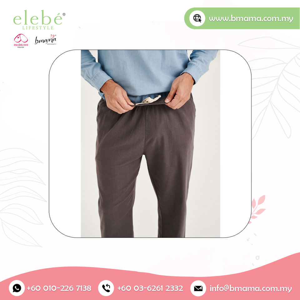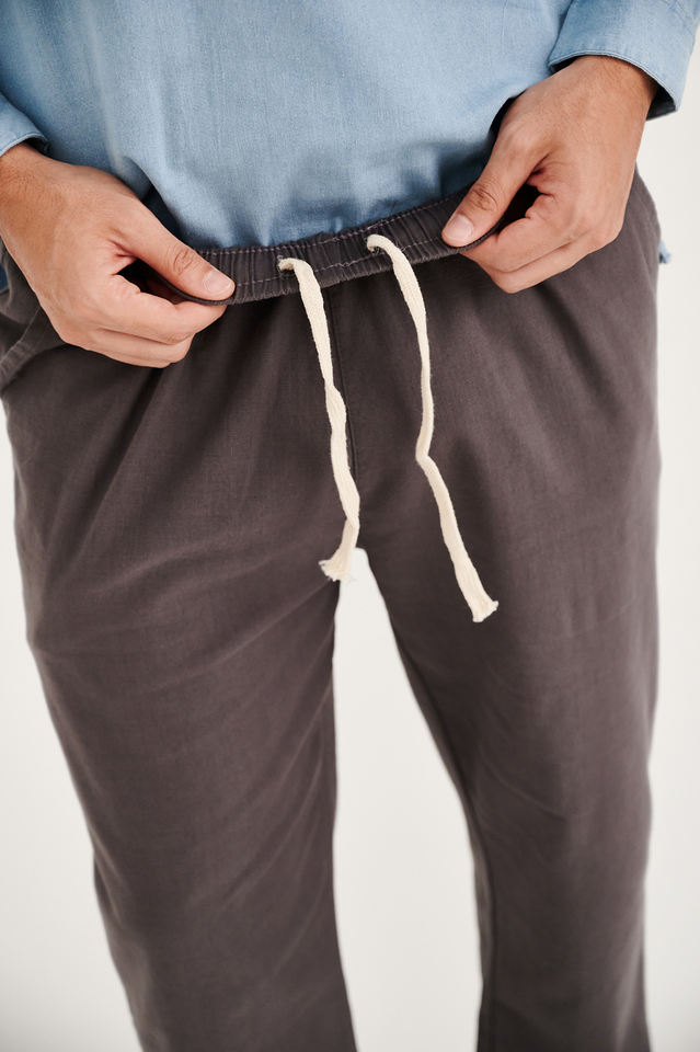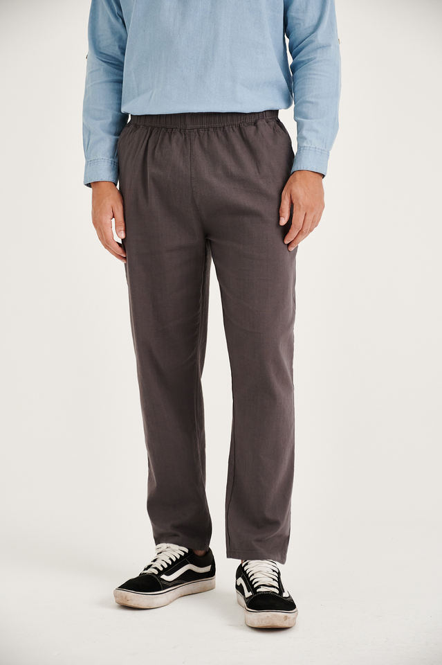 กางเกงลำลองผู้ชายผ้าลินินสีเทาเข้ม