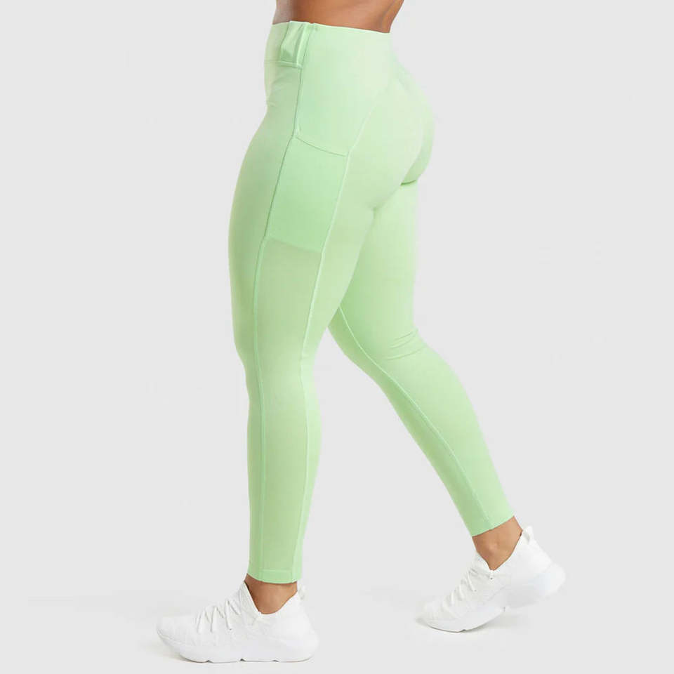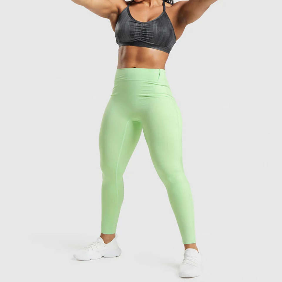 กางเกงออกกำลังกายเอวสูงของผู้หญิงกางเกงเลกกิ้งสีเขียวมิ้นท์สวมใส่สบาย