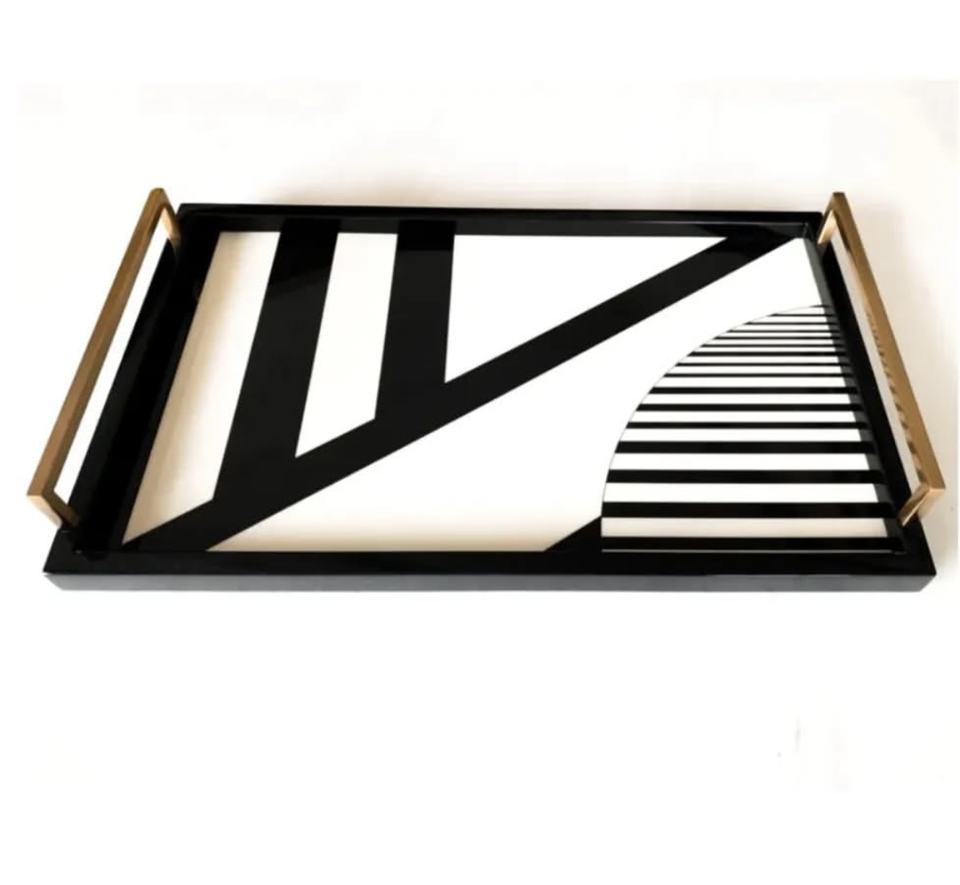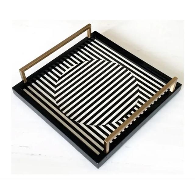ถาดเสิร์ฟเรซิ่นสีดำขาวลายหมากรุกดีไซน์ใหม่ล่าสุด พร้อมหูจับโลหะ ถาดเก็บของสำหรับน้ำหอม เครื่องประดับ นาฬิกา และจาน