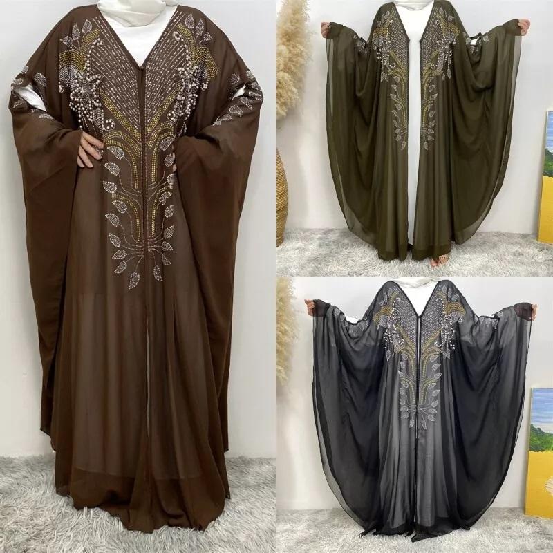 ชุดเดรสมุสลิมมุสลิมสำหรับผู้หญิงชุดอาบายาผ้าชีฟองสองชิ้น