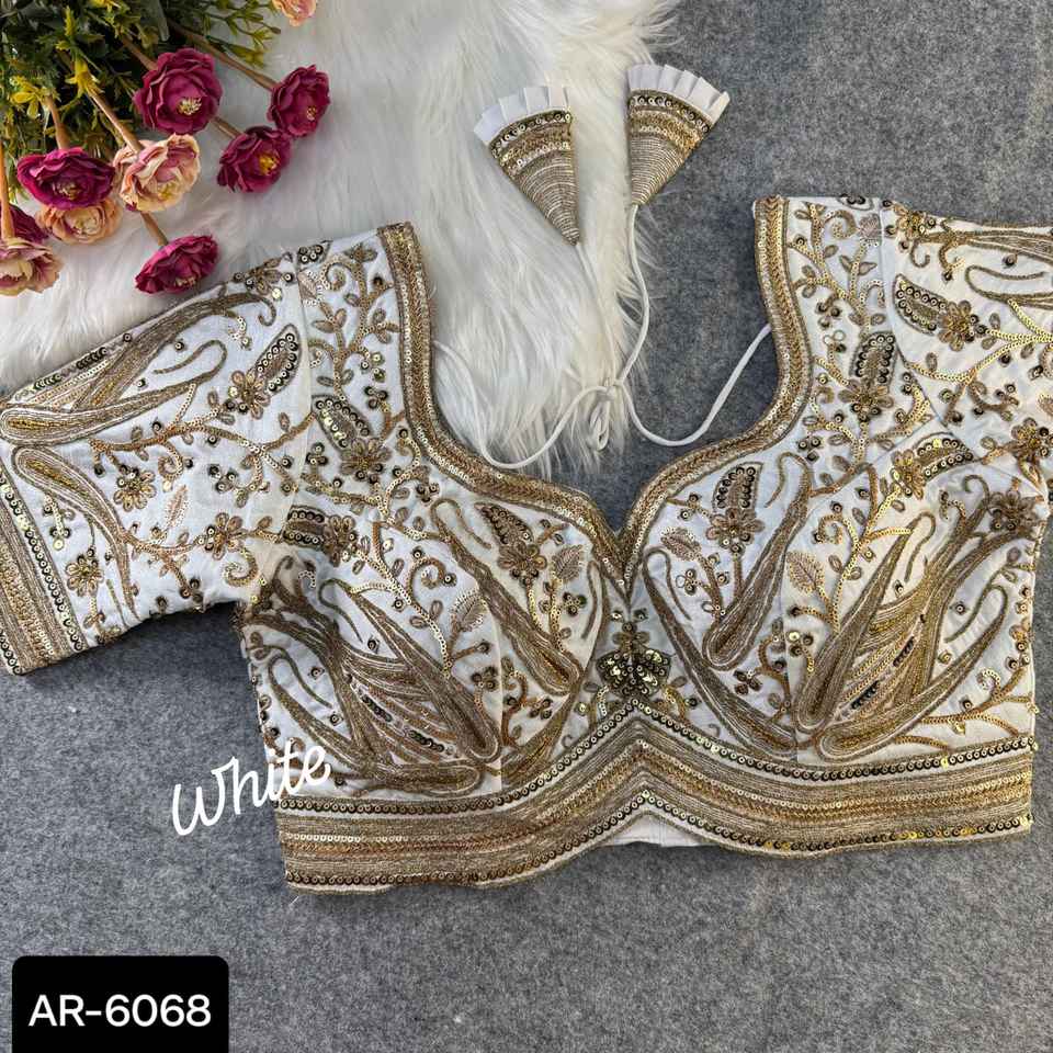 เสื้อเบลาส์ผ้าชีฟองสีขาวพร้อมเสื้อเบลาส์ผ้าส่าหรีแบบปักลวดลายแฟนซี