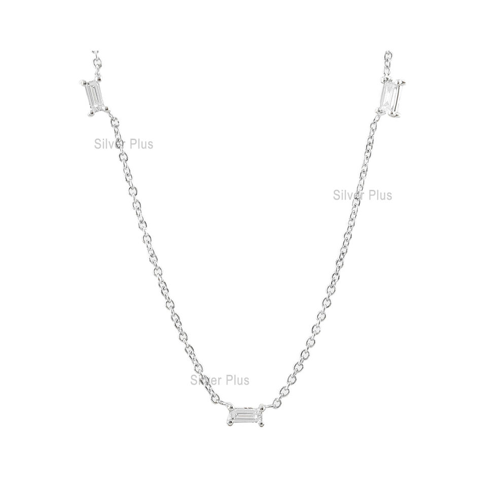 คอลเลกชันล่าสุด14K สร้อยคอทองคำแท้สร้อยคอเพชรบาแกตต์ธรรมชาติผู้ผลิตเครื่องประดับที่เรียบง่าย
