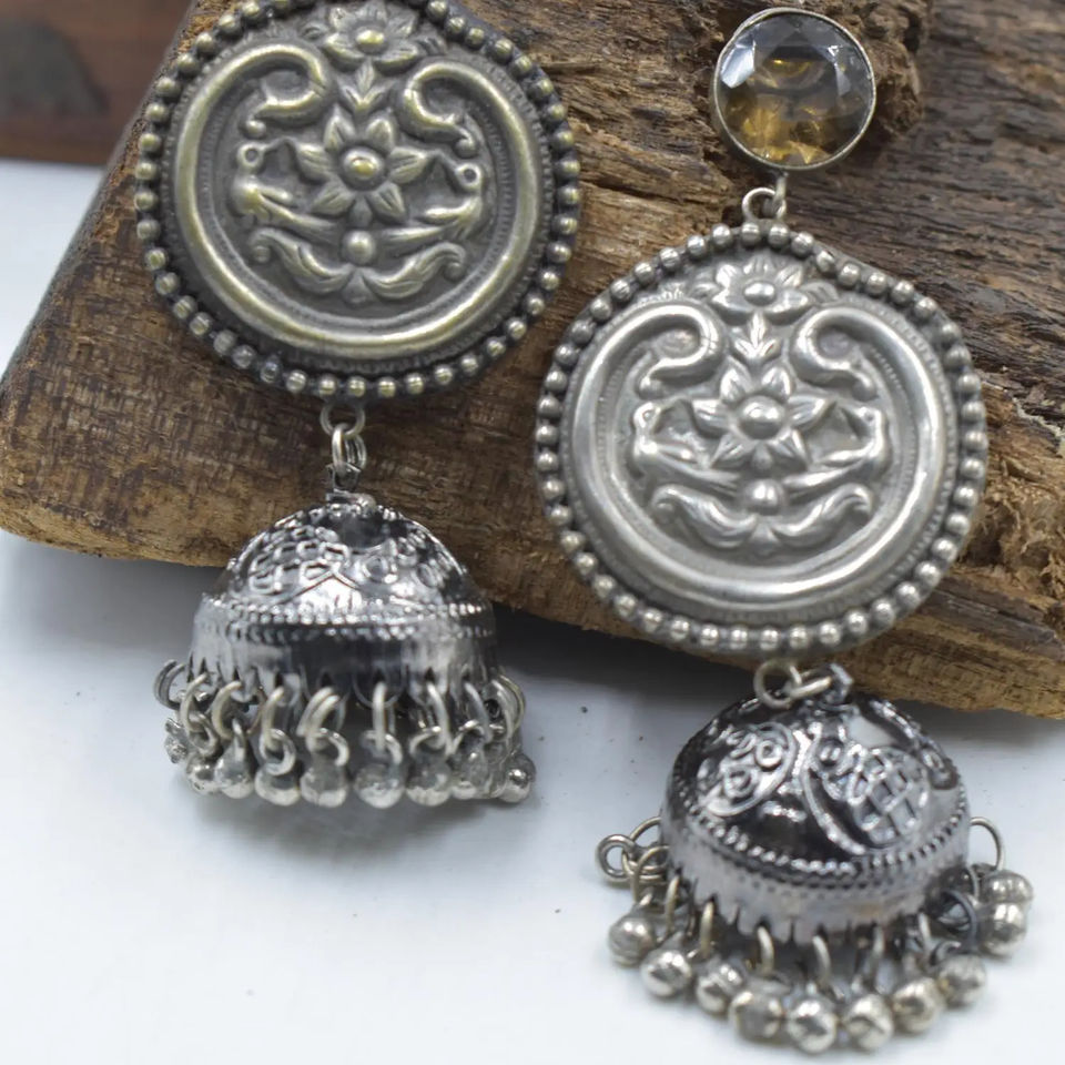 คอลเลกชันล่าสุด 2024 เงินดูเหมือนกันหินสตั๊ด Jhumka เครื่องประดับต่างหูสําหรับเด็กหญิงและสตรีในราคาขายส่ง