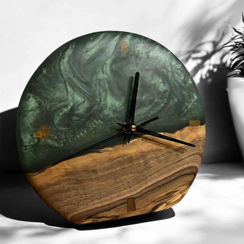 นาฬิกาตั้งโต๊ะไม้เรซิ่นอีพ็อกซี่สีขาวงานแฮนด์เมดคอลเลคชั่นล่าสุด ตกแต่งภายในบ้านได้ตามสั่ง