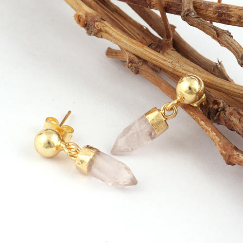คอลเลกชันล่าสุดธรรมชาติโรสควอตซ์ต่างหูชุบทองลดลงห้อยสวมใส่ทุกวันเครื่องประดับปรับกระสุนรูปร่างเหลี่ยมเพชรพลอยห้อยหยด