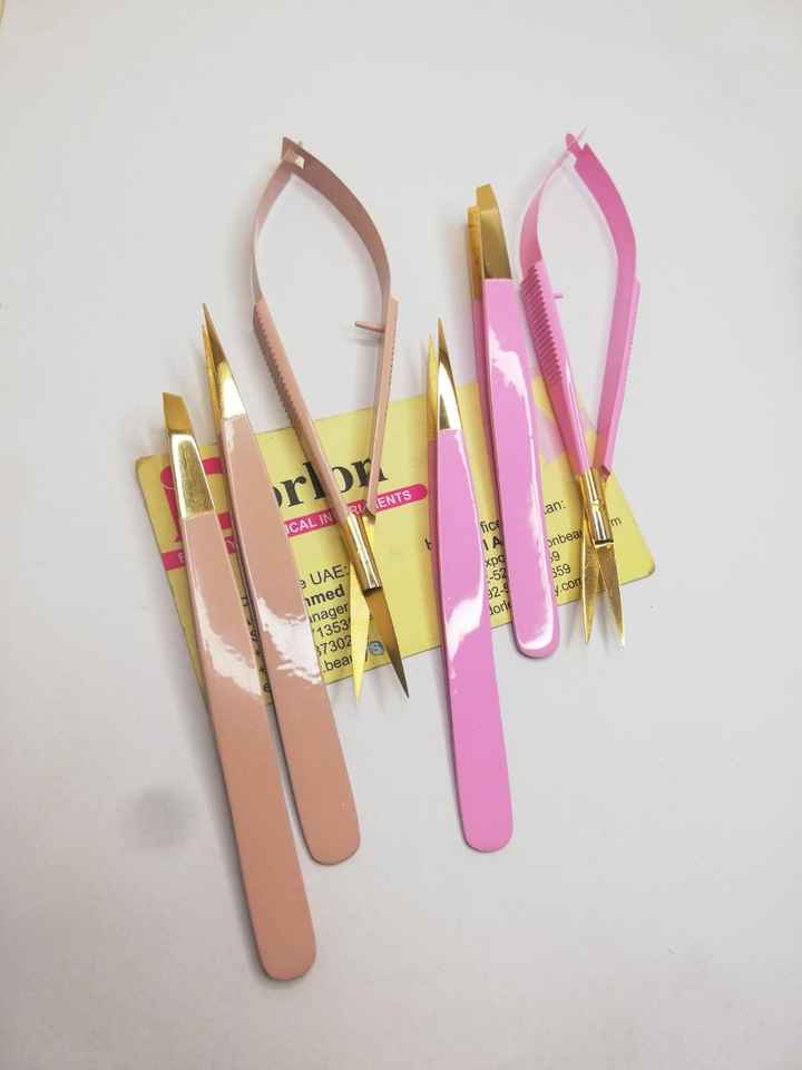 แหนบปลายต่อขนตาเคลือบสีทองทำจากสเตนเลสสตีลใช้กำจัดขนคุดโลโก้ได้ตามต้องการ