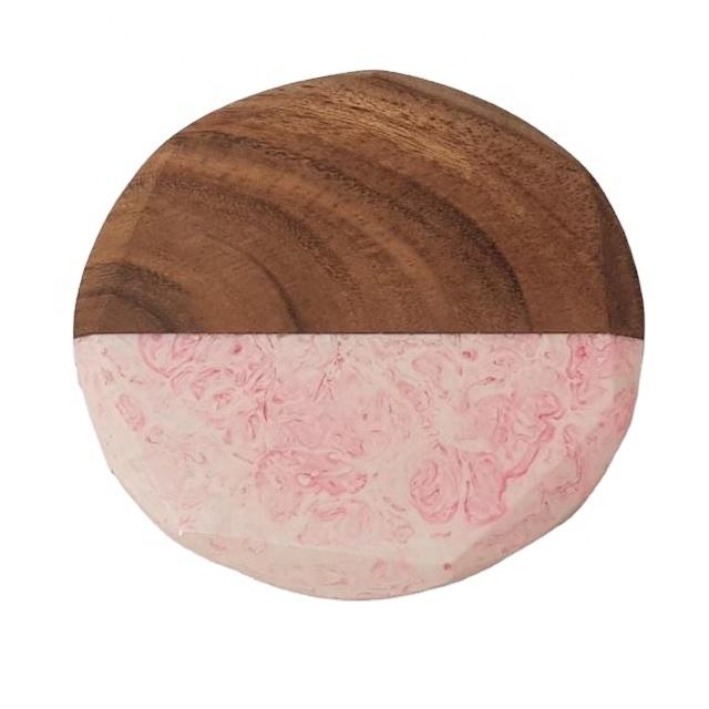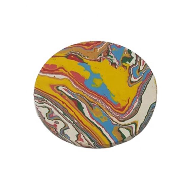 แผ่นรองถ้วยชาทรงกลมเรซินสีสันสดใสแผ่นรองแก้วสำหรับใช้ในครัวเรือน