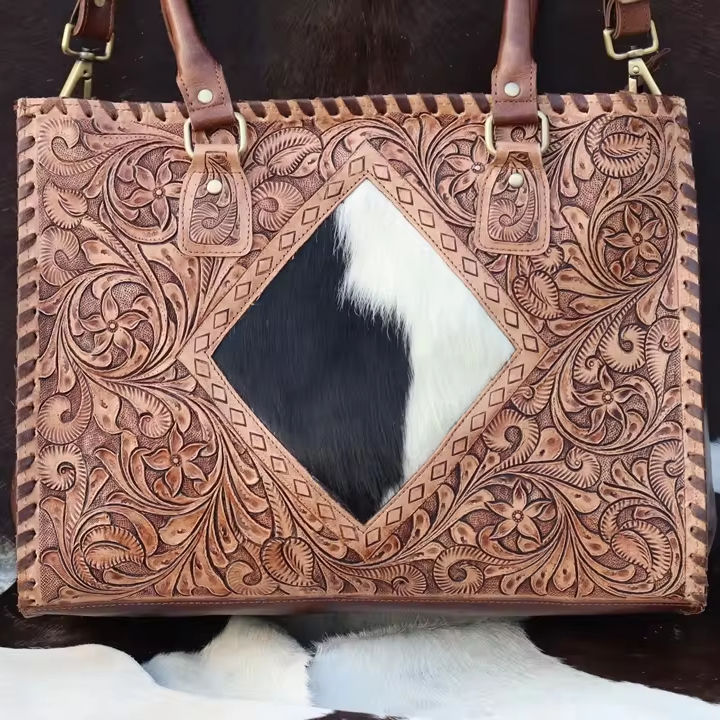 ผลิตภัณฑ์:กระเป๋าโท้ทหนังวัวแกะสลักเครื่องมือ