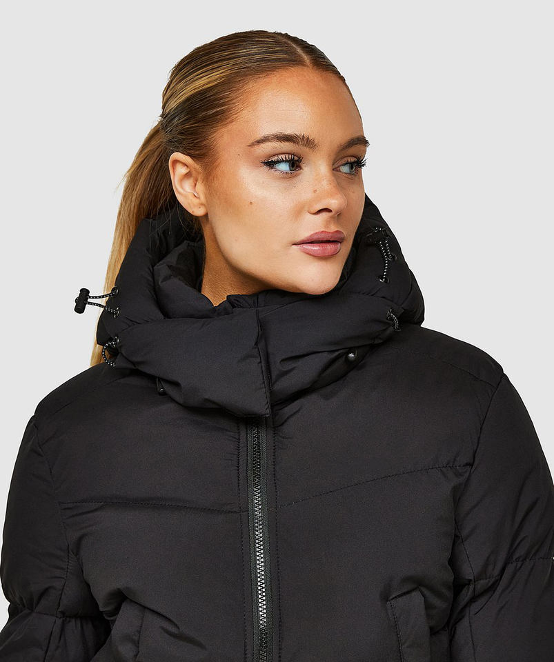 แจ็กเก็ตขนเป็ดแบบวิสต้าของผู้หญิงซิปเต็มและถอดออกได้เสื้อแจ็คเก็ตขนเป็ดสำหรับฤดูหนาวสีดำเจ็ทออกแบบได้ตามต้องการล่าสุด