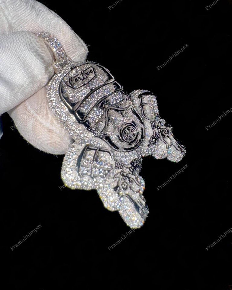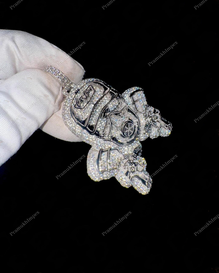 จี้เพชรโมอิสสีขาวชุบทองจี้การ์ตูนทำจากเงินแนวฮิปฮอป925