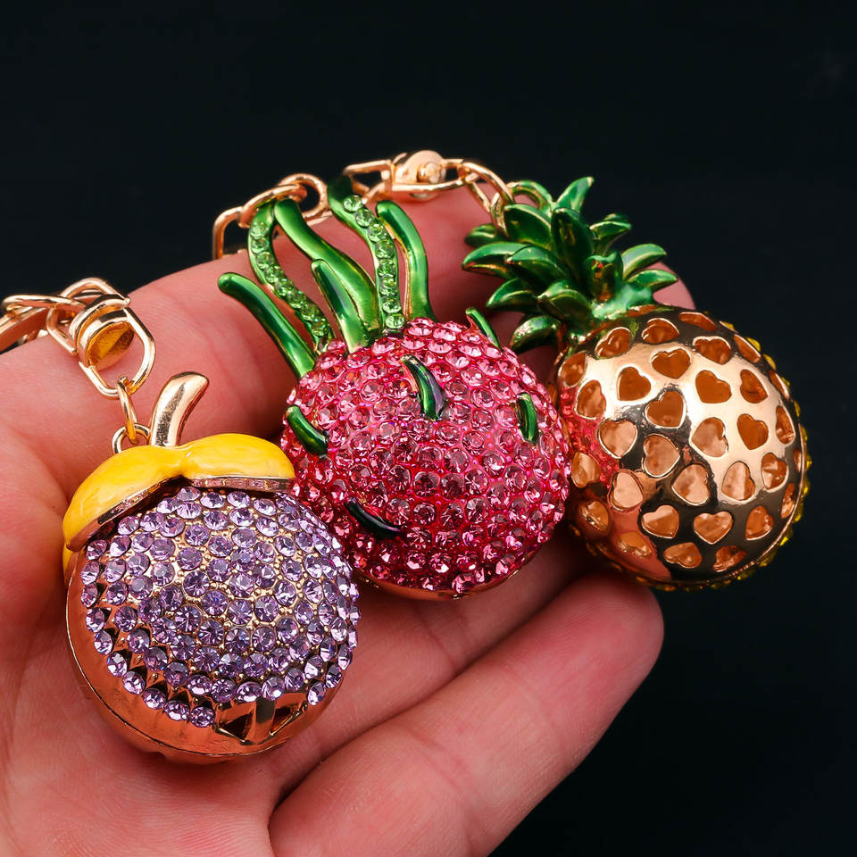 จี้ผลไม้ประดิษฐ์ประดับเพชรน่ารักล่าสุดพวงกุญแจสับปะรดมังกรผลไม้ลิ้นจี่