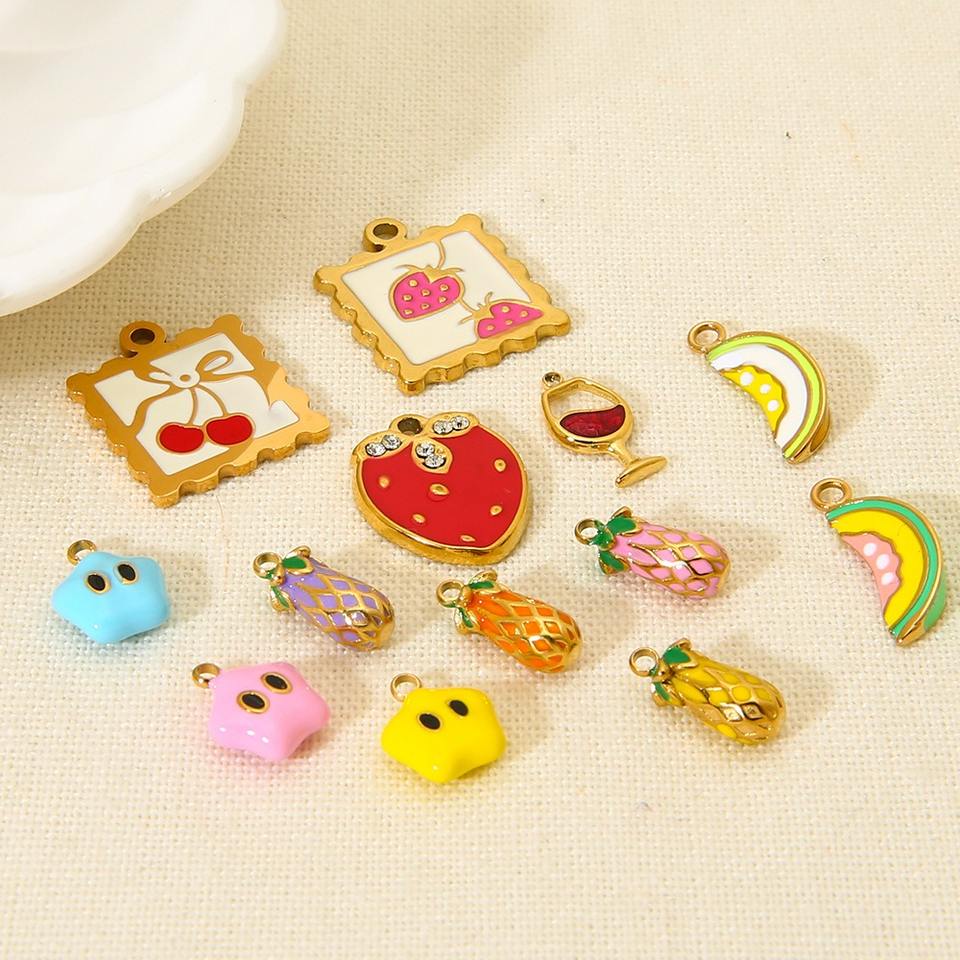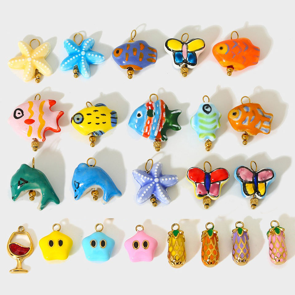 ล่าสุดอุปกรณ์ทำมือเครื่องประดับที่มีสีสันผีเสื้อปลาดาวผลไม้ทาสีด้วยมือชีวิตทางทะเลสแตนเลสจี้เสน่ห์