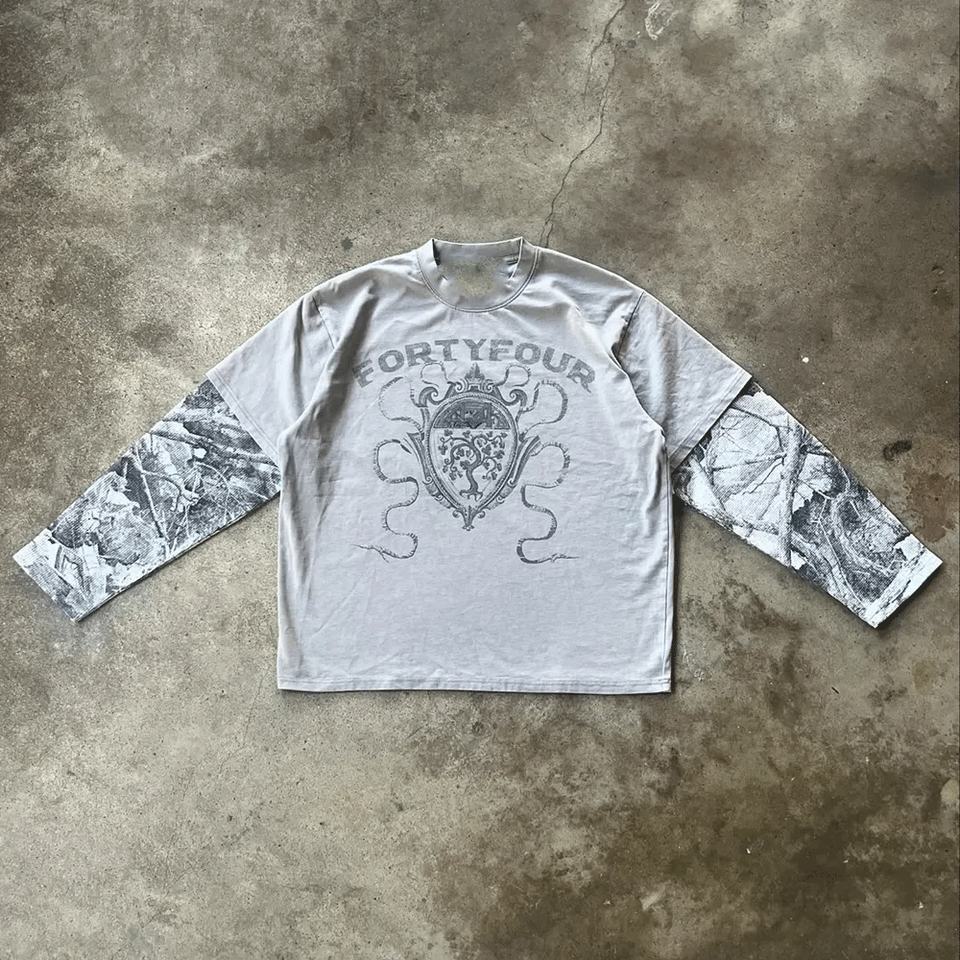 เสื้อยืดแขนยาวสองชั้นสำหรับผู้ชายผ้าฝ้าย100% ดีไซน์ล่าสุด