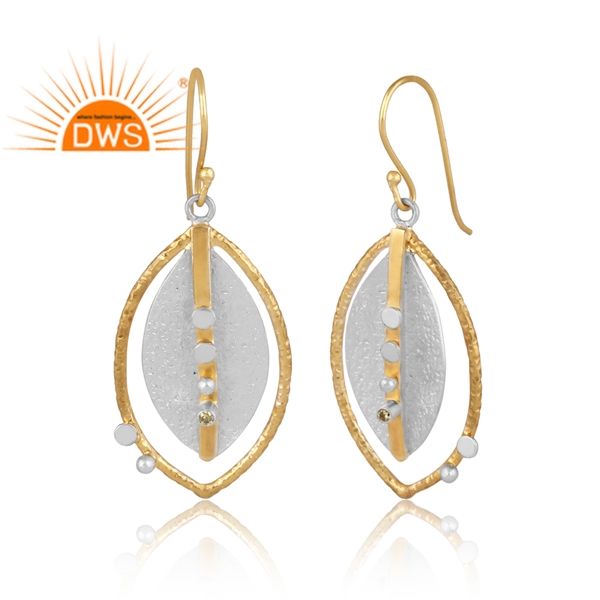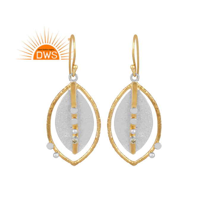 ต่างหูห้อยอัญมณีซิทรีนธรรมชาติชุบทอง18K ดีไซน์ล่าสุดเครื่องประดับอัญมณี