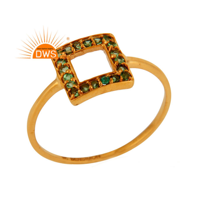 แหวนพลอย tsavorite ธรรมชาติชุบทอง18K แบบล่าสุดแหวนวางซ้อนกันได้เครื่องประดับชั้นดีสำหรับผู้หญิงของขวัญสำหรับผู้หญิง