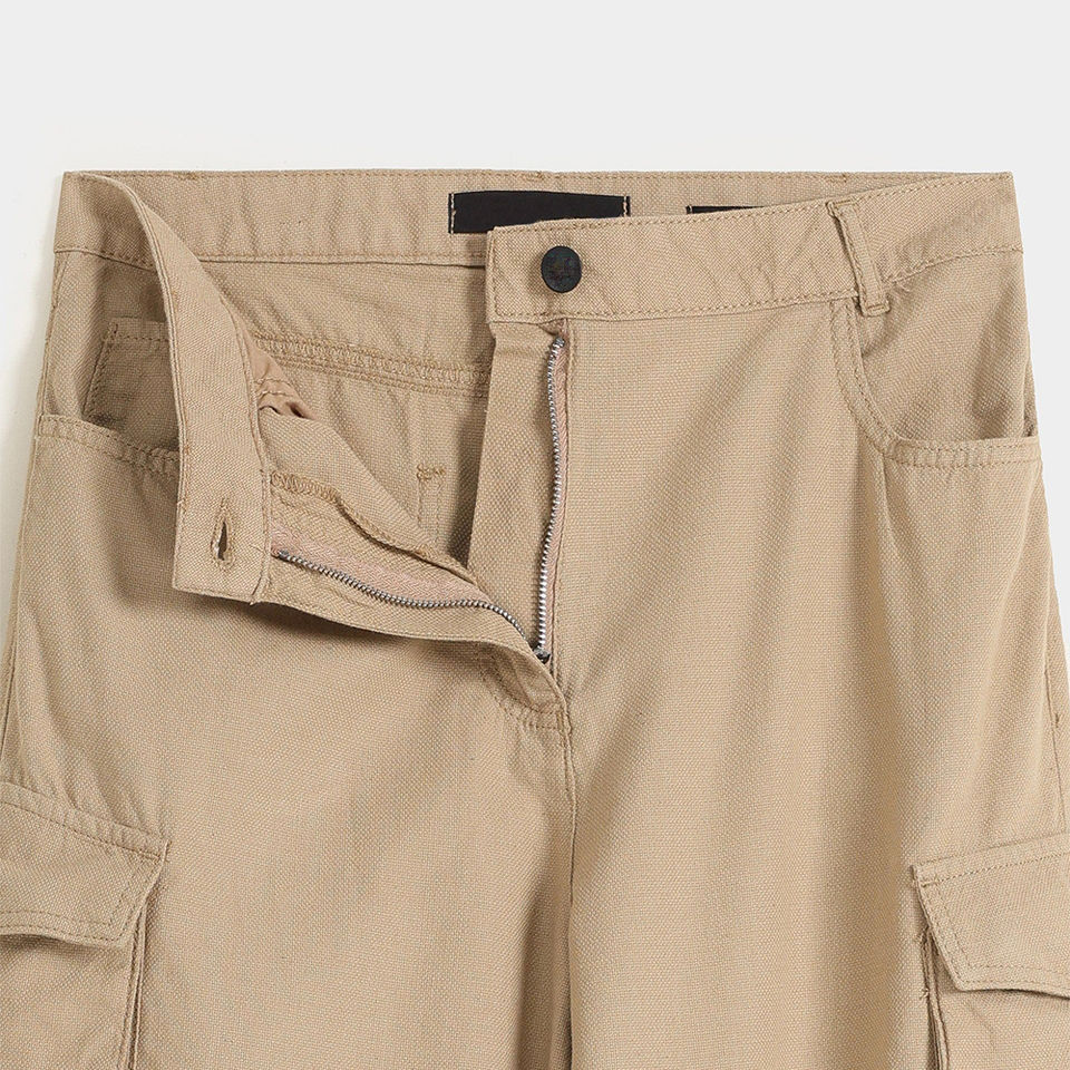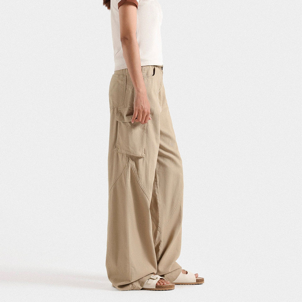 กางเกงสตรีทรงหลวมสีเบจใส่สบายดีไซน์ล่าสุด