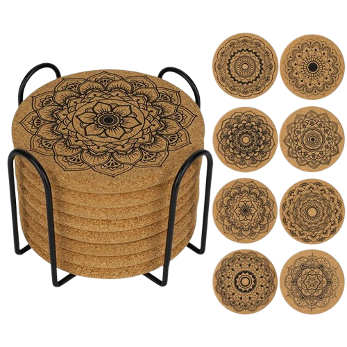 ที่รองแก้วไม้ก๊อกพิมพ์ลายดอกไม้2025เครื่องครัวไม้ & หิน