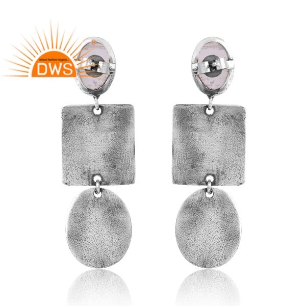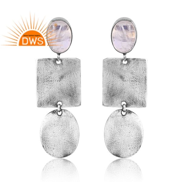 ต่างหูอัญมณีสีรุ้งดวงจันทร์925สีเงินออกซิไดซ์ธรรมชาติสำหรับผู้หญิงดีไซน์ตามต้องการ