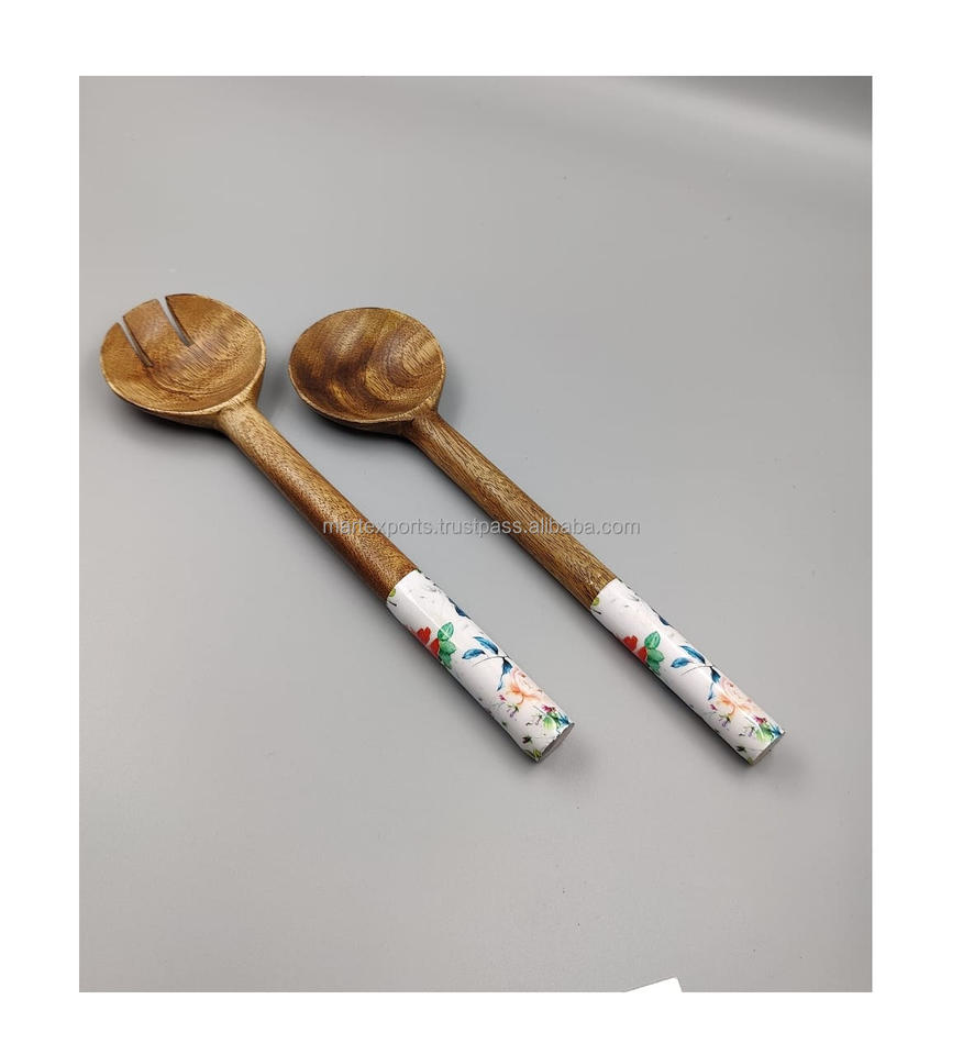 ชุดไม้อาเคเชียลสำหรับสลัดช้อนด้ามไม้แบบมีเอกลักษณ์เครื่องครัวสำหรับงานเลี้ยงดีไซน์ล่าสุด