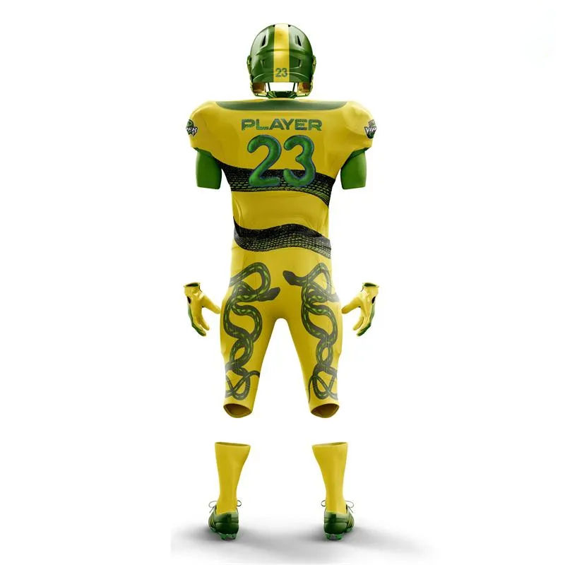 ชุดยูนิฟอร์มอเมริกันฟุตบอลดีไซน์ล่าสุดสำหรับผู้ใหญ่ แขนสั้น โพลีเอสเตอร์ 100% ระบายเหงื่อได้ดี ปรับแต่งได้ ขายส่งเป็นชุด
