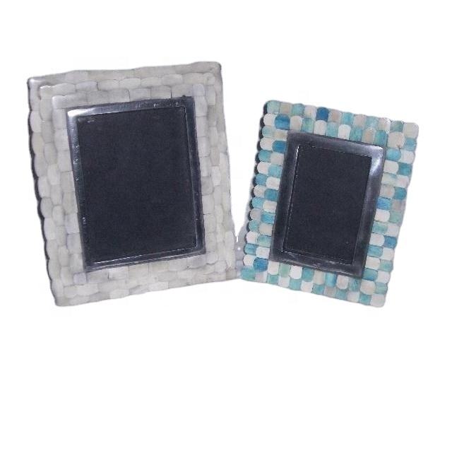 กรอบรูปภาพโมเสครูปกระดูกฝังโมเสคพร้อมกระจกขัดเงาบนโต๊ะกรอบรูปของขวัญงานแต่งงานกรอบรูป