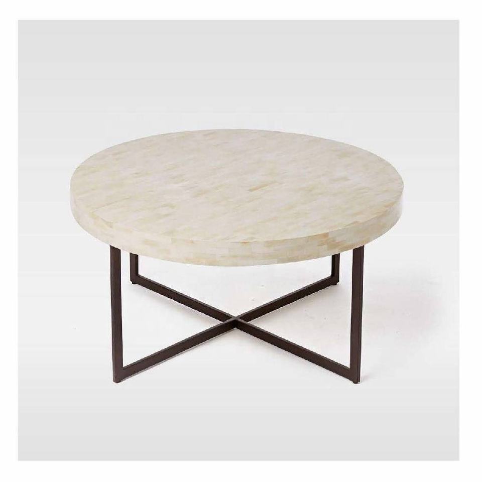 โต๊ะกาแฟกลมฝังกระดูกพร้อมโครงเหล็กโต๊ะตรงกลางฝังกระดูกโต๊ะข้างห้องนั่งเล่นดีไซน์ล่าสุด