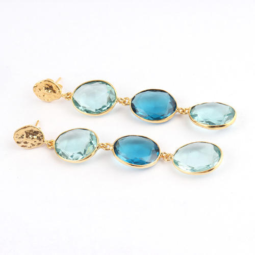 ล่าสุดการออกแบบตรวจสอบตัดสวิสสีฟ้าควอตซ์และลอนดอนสีฟ้าควอตซ์วางต่างหูโรงงานขนาดใหญ่ทอง/เงินชุบห้อยต่างหู