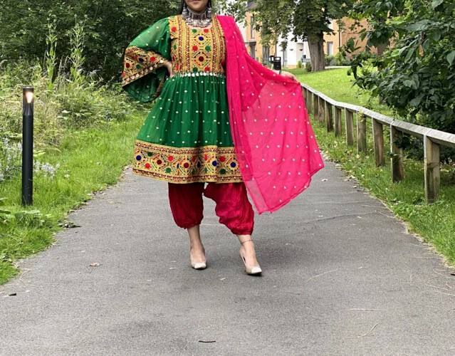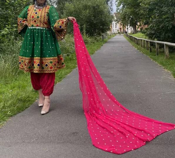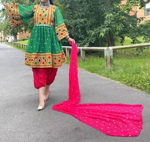 Latest Design Chiffon Frock Plus Size Fancy Afghani Suit Set Embroidery Eco-Friendly Flare Sleeve Vintage Afghan Wear Breathable
