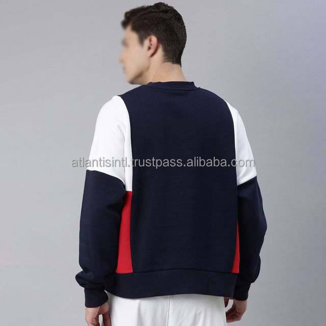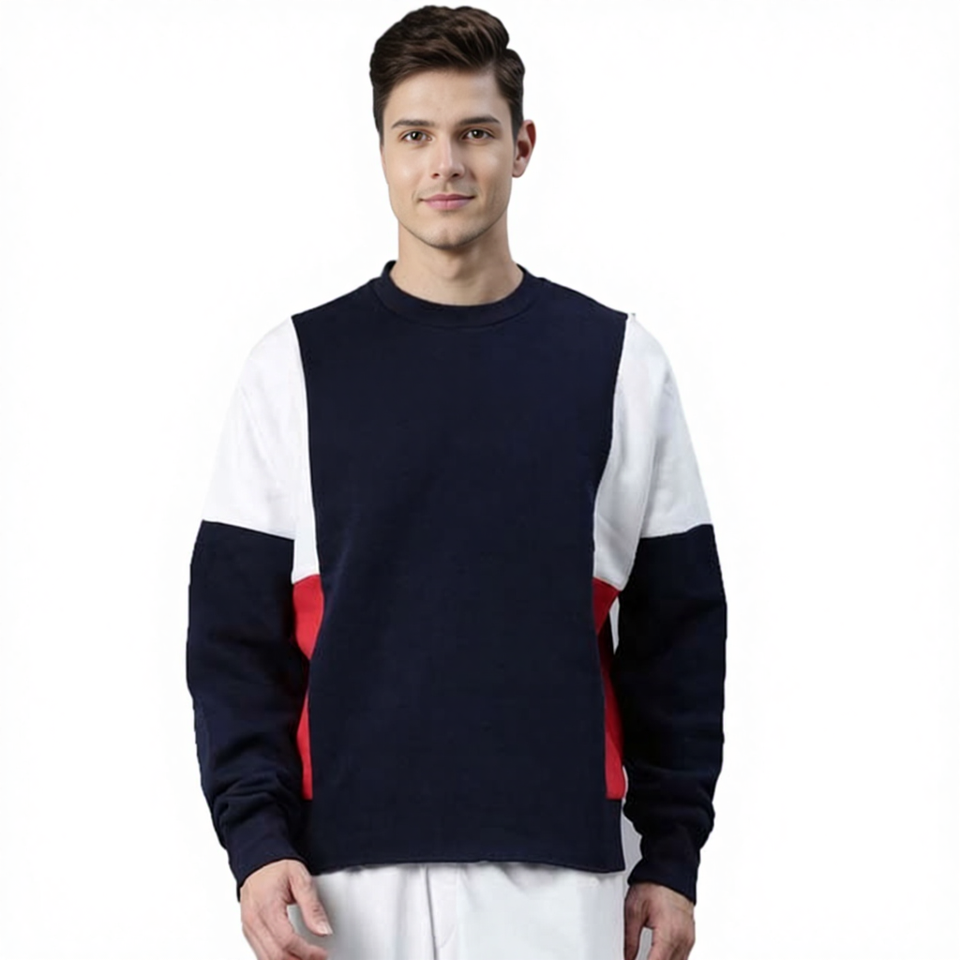 เสื้อสเวตเชิ้ตคอกลมผู้ชาย ดีไซน์ล่าสุด ตัดต่อสามสี ปักโลโก้ตามสั่ง คุณภาพสูง ผ้าฟลีซ ใส่สบายสำหรับฤดูหนาว