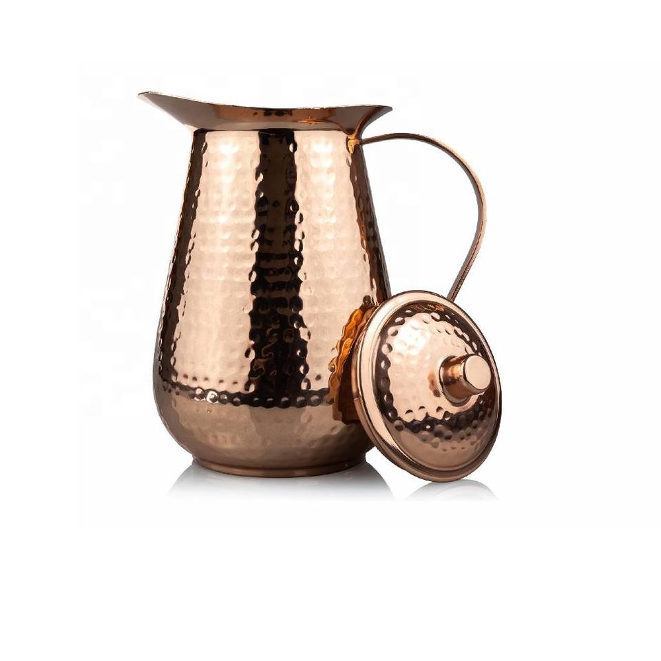 การออกแบบล่าสุดขวดน้ําทองแดงข้างเตียงพร้อมแก้วน้ํา ยุโรเวดิกขวดทองแดงป้องกันการรั่วเหยือกน้ําทองแดงพร้อมแก้วน้ํา