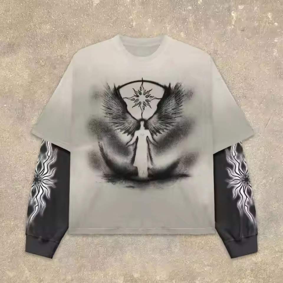 เสื้อยืดแขนยาวสองชั้นสำหรับผู้ชายโอเวอร์ไซส์ออกแบบโลโก้ได้ตามต้องการ