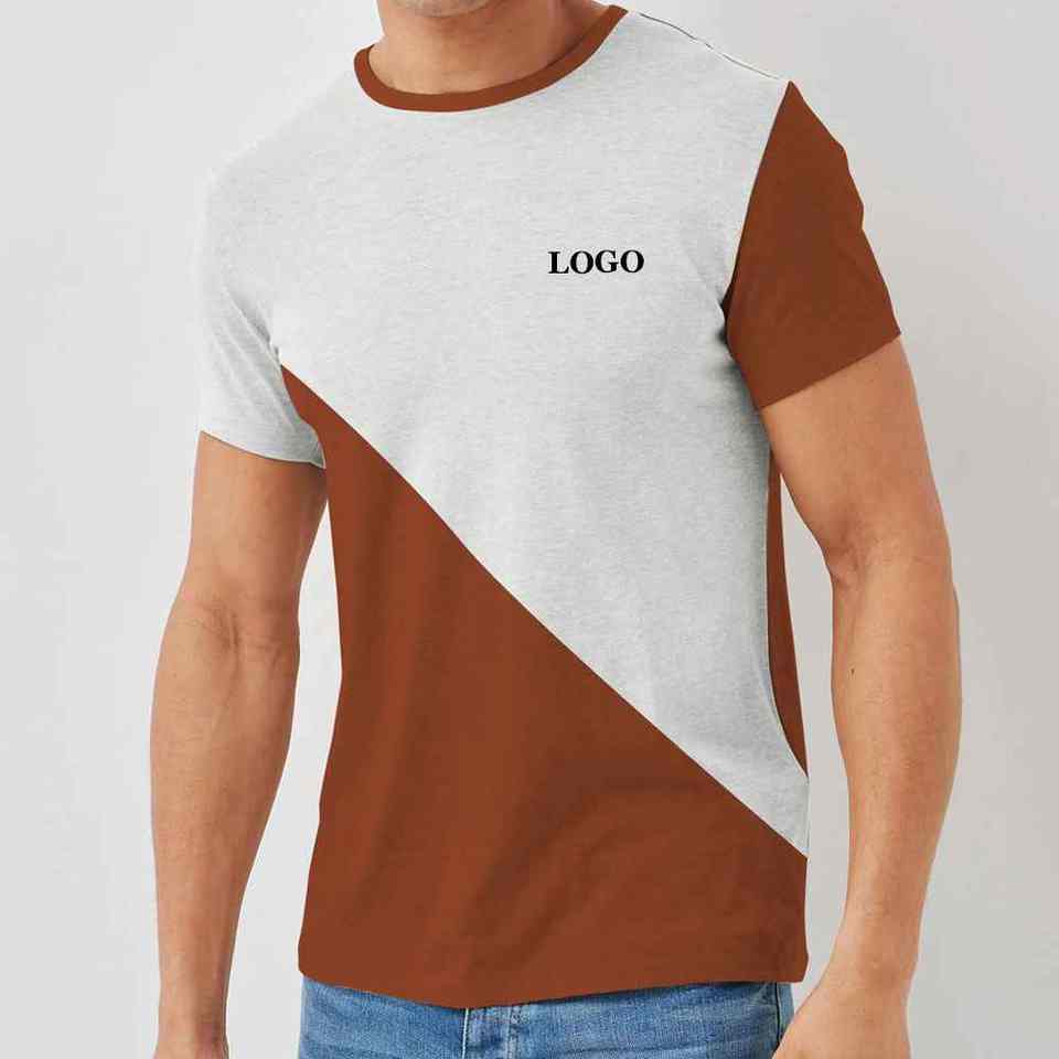 เสื้อยืดลายบล็อกสีสำหรับผู้ชายเสื้อยืดธรรมดาปรับได้