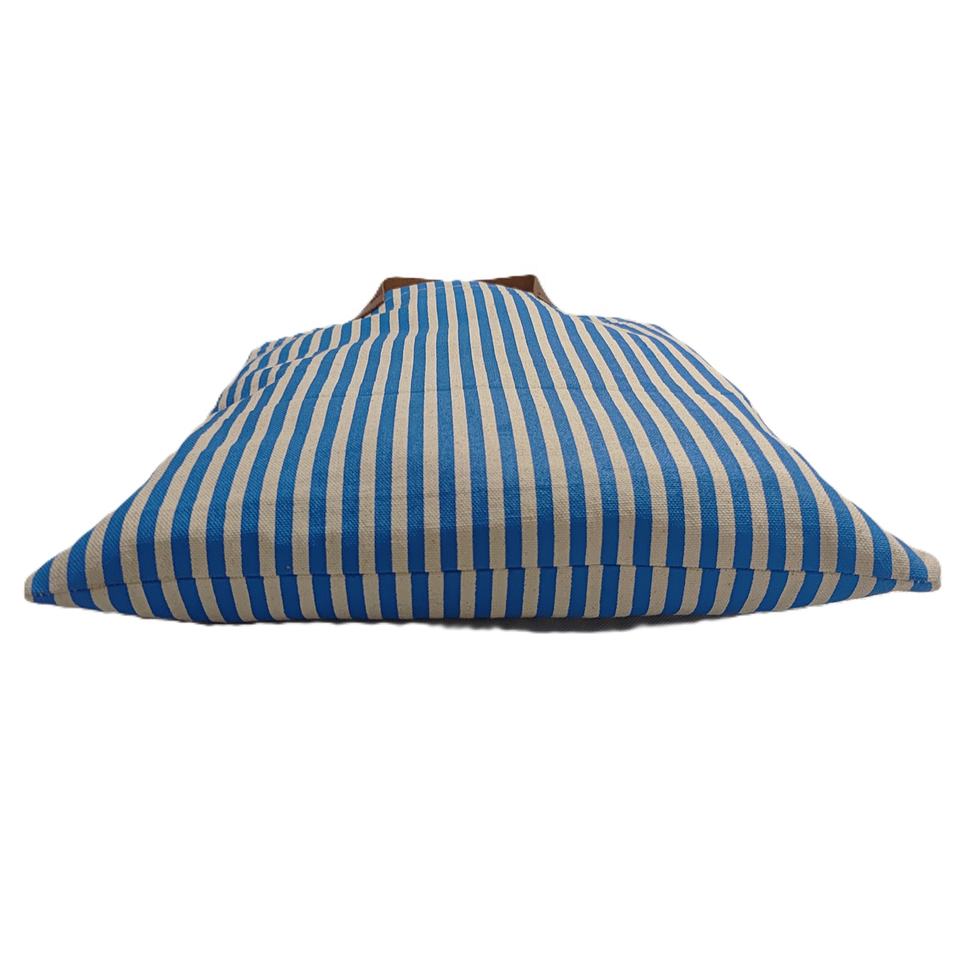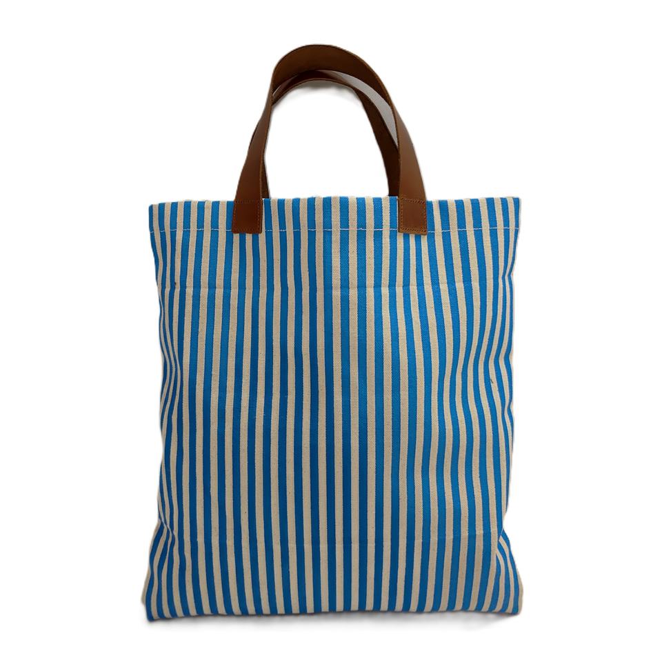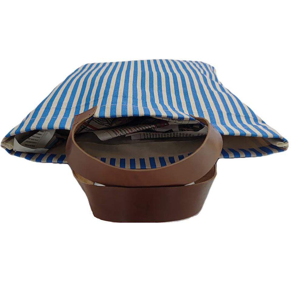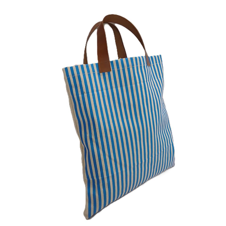 กระเป๋าผ้าแคนวาสลายทางแฟชั่นใหม่ล่าสุด ดีไซน์สั่งทำพิเศษ พร้อมหูหิ้วหนัง ใช้ซ้ำได้ เหมาะสำหรับใส่ของไปชายหาดหรือช้อปปิ้ง