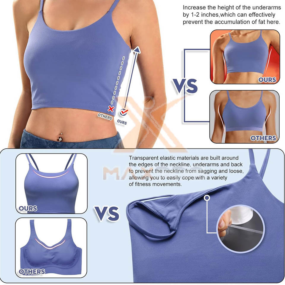 บราออกกำลังกายสำหรับผู้หญิง ดีไซน์ล่าสุด โลโก้แบบกำหนดเอง ระบายอากาศได้ดี รองรับทรงได้ดี พร้อมตัวเลือกโลโก้ด้านหน้า ผลิตจากวัสดุสแปนเด็กซ์/โพลีเอสเตอร์
