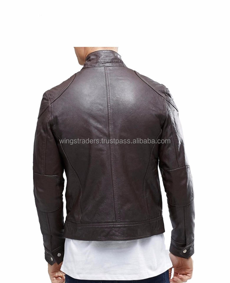 แจ็คเก็ตหนังสีน้ำตาลเข้มสำหรับผู้ชายดีไซน์ล่าสุด