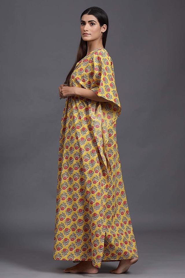 เดรสแม็กซี่คาฟตันสำหรับผู้หญิงผ้าฝ้ายพิมพ์ลายสำหรับผู้หญิงดีไซน์ล่าสุด