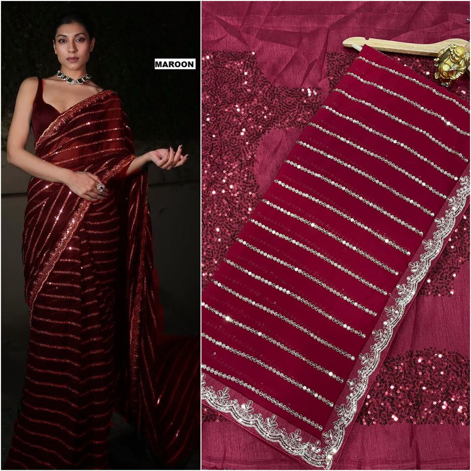 ชื่อผลิตภัณฑ์:ผ้าส่าหรีผ้าจอร์เจียที่สวยงามพร้อมงานปักเลื่อมหนา5มม.