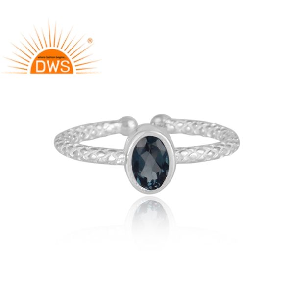 แหวนอัญมณีสีเงินแท้ปรับได้สีฟ้าบุษราคัมสไตล์ลอนดอนดีไซน์ล่าสุด