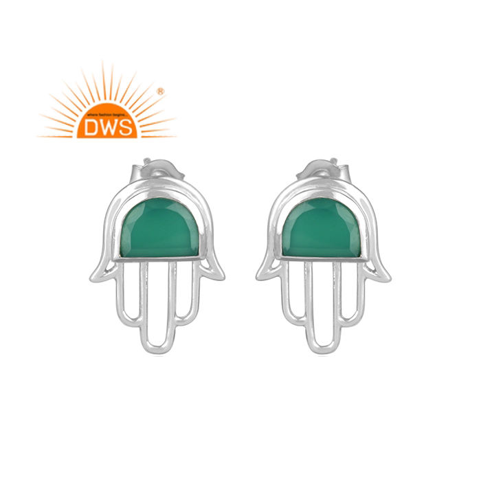 ต่างหูสตั๊ดพลอยสีเขียวโอนิกซ์สีเงินคุณภาพดีดีไซน์ล่าสุดผลิตตามสั่ง