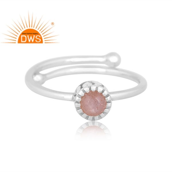 แหวนพลอยมูนสโตนปรับได้สีเงินสเตอร์ลิงธรรมชาติดีไซน์ล่าสุด