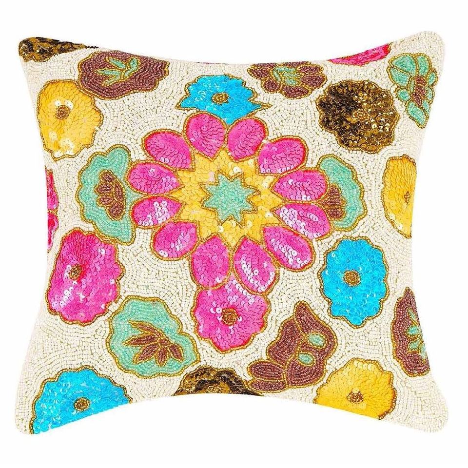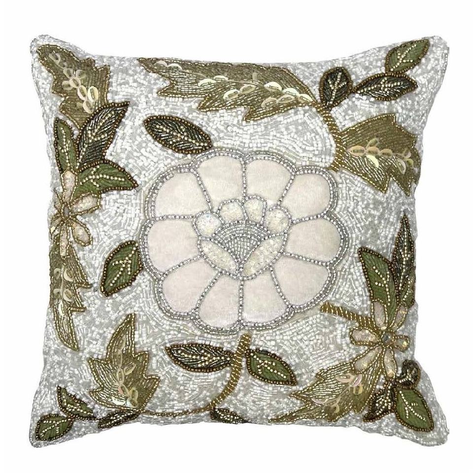 ปลอกหมอนอิงลายดอกไม้ดีไซน์ล่าสุด ประดับด้วยลูกปัดแก้ว ปลอกหมอนตกแต่งทำมือ ราคาขายส่ง