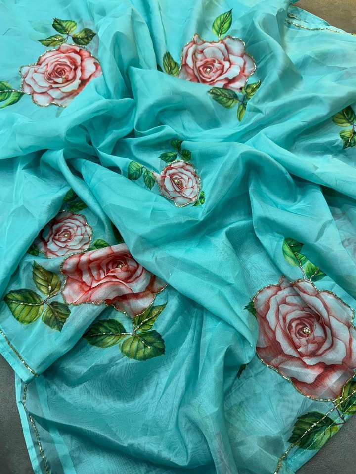 คอลเลกชั่นส่าหรีลายดอกไม้ดีไซน์ล่าสุดผ้าแบแบบนิ่มและงานมือมุกสำหรับงานปาร์ตี้และงานเทศกาล