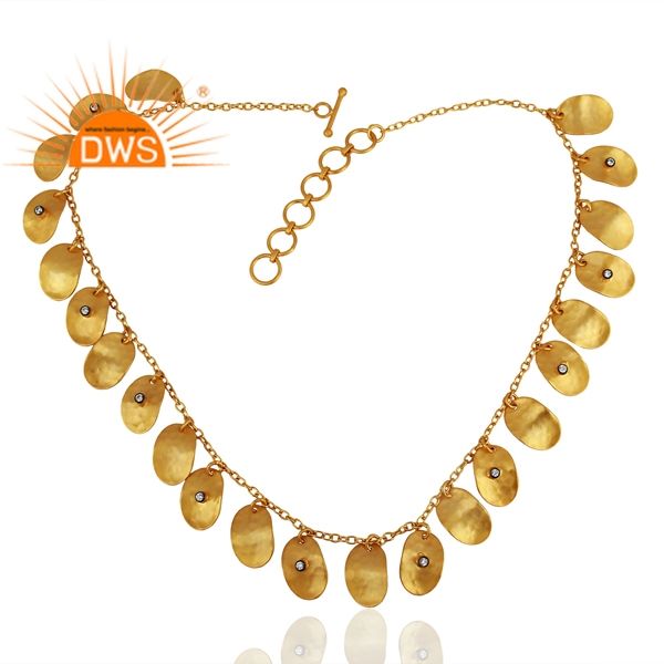 Latest Design Gold Plated Natural Cubic Zirconia Quartz Gemstone Pendant Necklace Demi Fine Jewelry Manufacturer