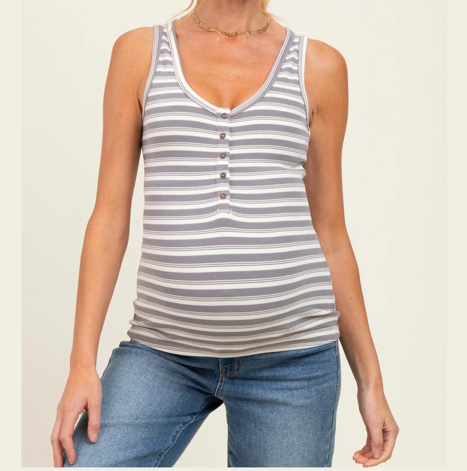 เสื้อยืดคนท้องแขนสั้นลายทางพิมพ์เรียบง่าย ดีไซน์ล่าสุด คุณภาพสูง แฟชั่นทันสมัย ติดกระดุม เหมาะสำหรับใส่ในช่วงตั้งครรภ์ ฤดูร้อน