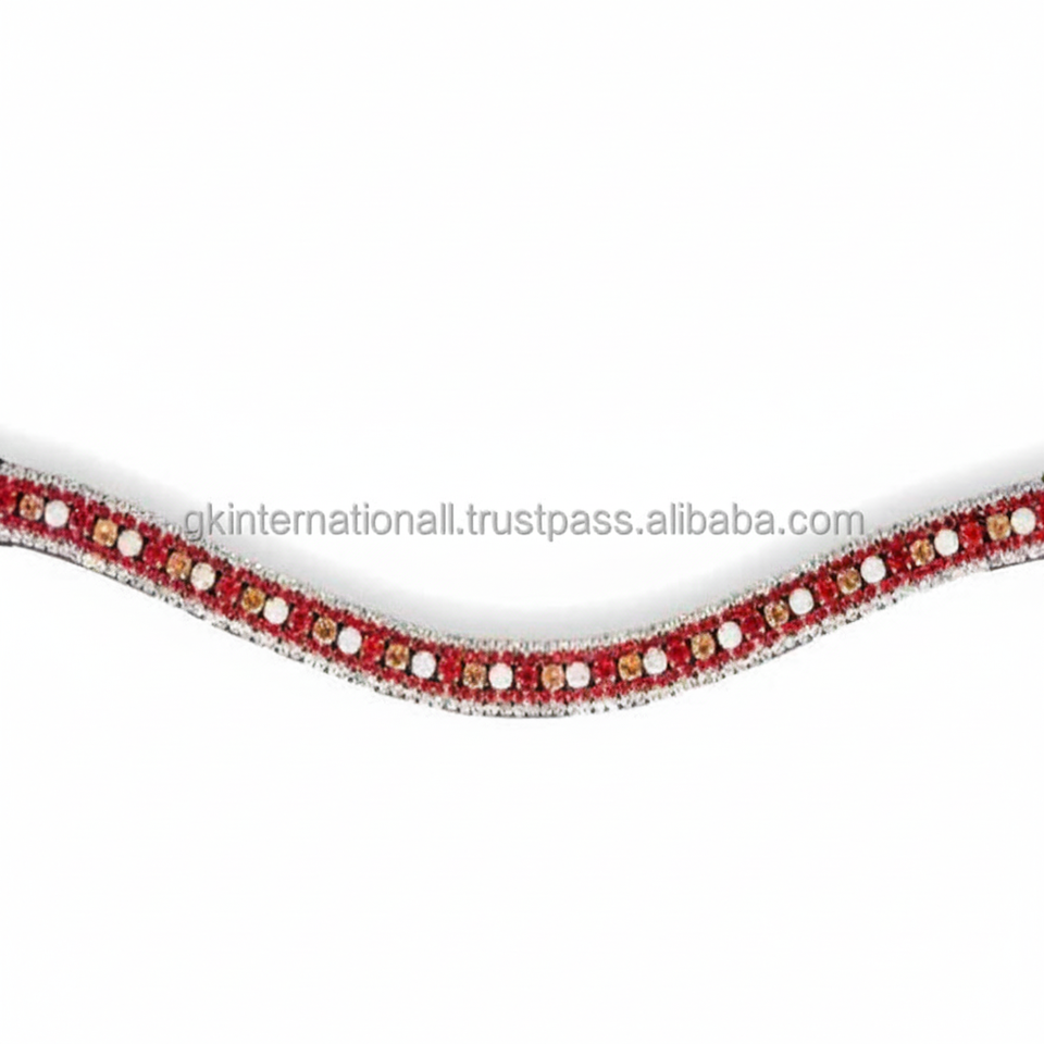 สายคาดคิ้วหนังม้าทำด้วยมือสีดำสีน้ำตาลสีดำงานดีไซน์ล่าสุดมี5แถวลูกปัดคริสตัลสีแดงและสีขาว