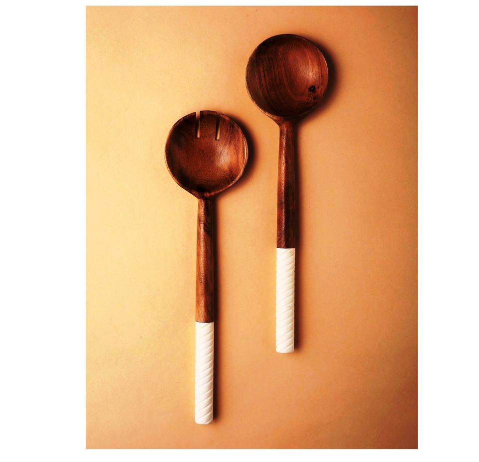 Latest Design Handmade Polished Wooden Salad Server Set Customizable Kitchenware Made From Acacia & Mango Bay Acacia Wood
