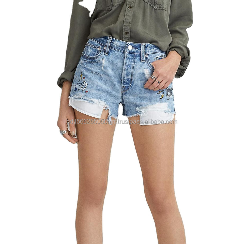 กางเกงยีนส์ขาสั้นสีพื้นสำหรับผู้หญิงกางเกงยีนส์ระบายอากาศกันน้ำล้างได้ดีไซน์ล่าสุด