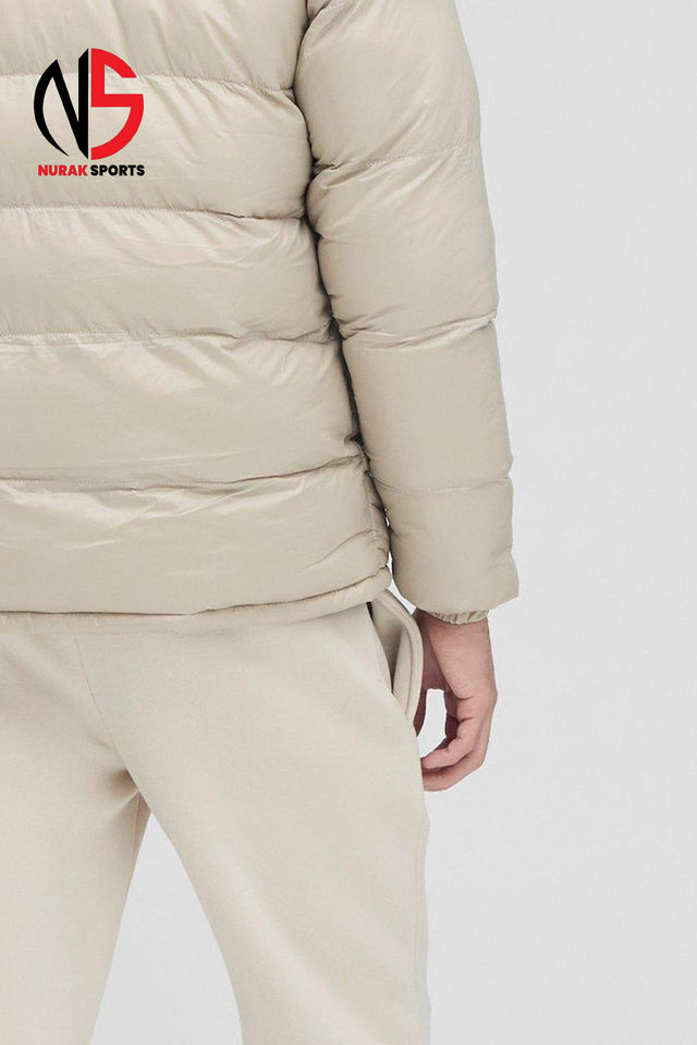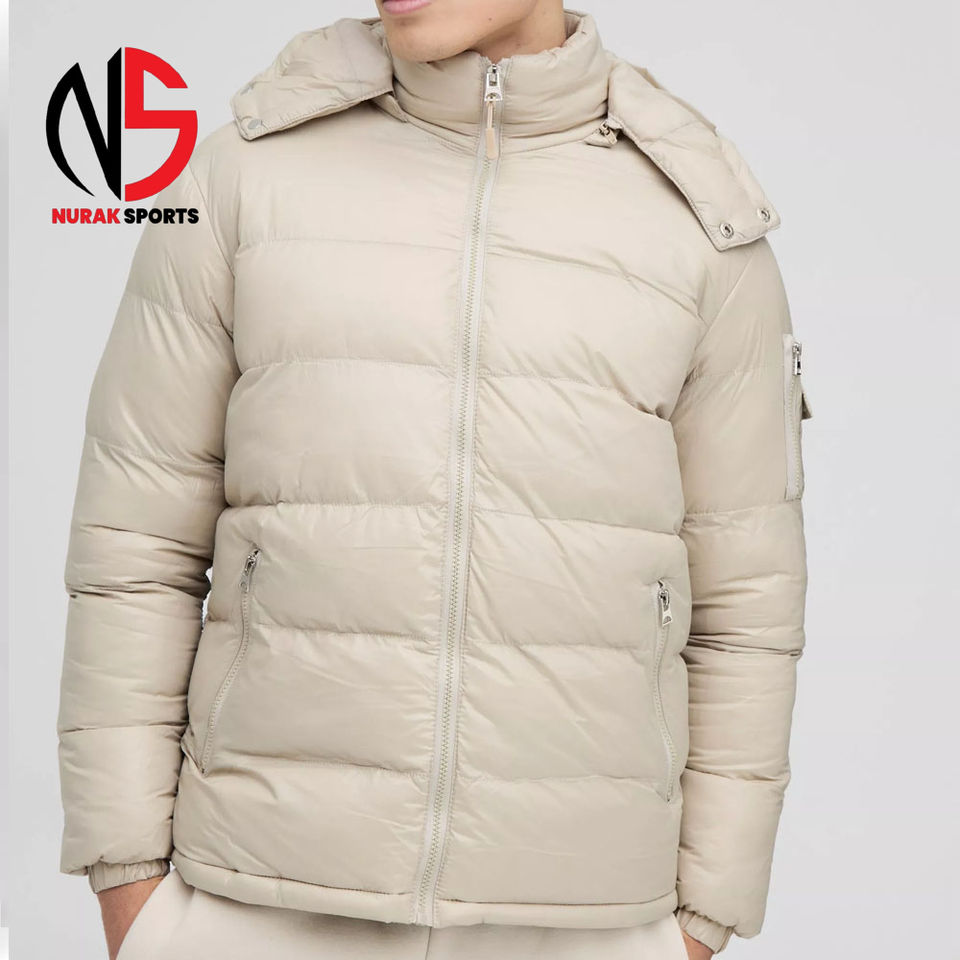 แจ็คเก็ตพัฟเฟอร์บุใยสังเคราะห์แบบมีแผ่นรองรับแรงกระแทก ดีไซน์ล่าสุด เงางาม กันลม อุ่นสบาย สีสโตน สำหรับฤดูหนาว แจ็คเก็ตบุใยสังเคราะห์สำหรับผู้ชาย รุ่นปี 2026