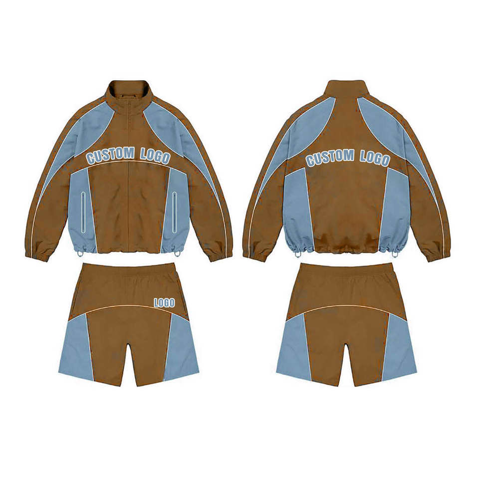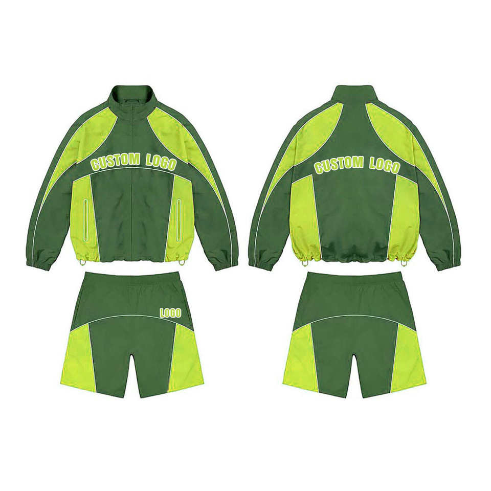 ชุดวอร์มกันลมแบบมีฮู้ด ดีไซน์ล่าสุด สำหรับผู้ใหญ่ ชุดออกกำลังกายพรีเมียมแบบสองชิ้น เสื้อแจ็คเก็ตและกางเกงขาสั้น