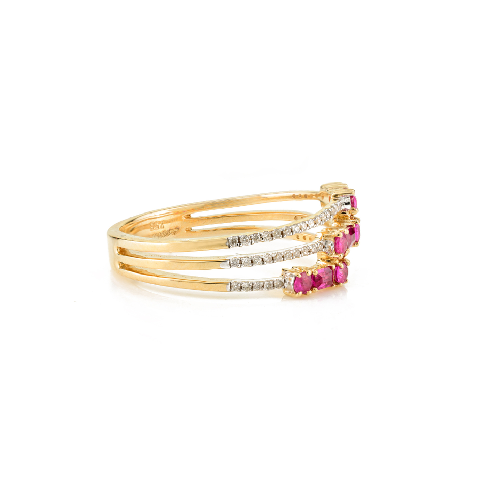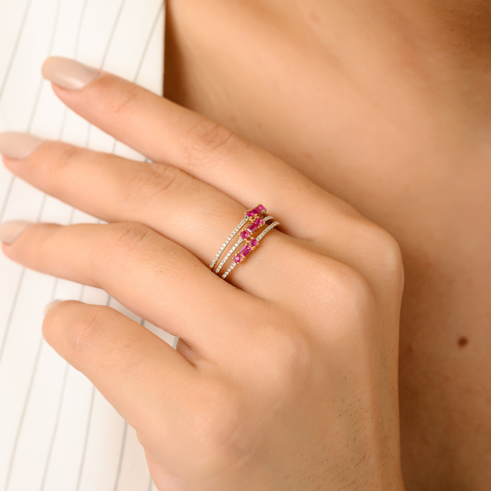 เครื่องประดับอัญมณีเพชรและทับทิม K18ดีไซน์ล่าสุดแหวนซ้อนกันสีเหลือง